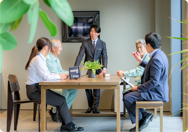 入社して間もなくは、先輩と一緒に営業同行(OJT)によってしっかりと業務を学ぶことができます!1~2年程経つとお客さまから信頼をいただけるように成長して、まさに「電気設備のコンシェルジュ」として営業的側面から「電気の専門家」になることができます。