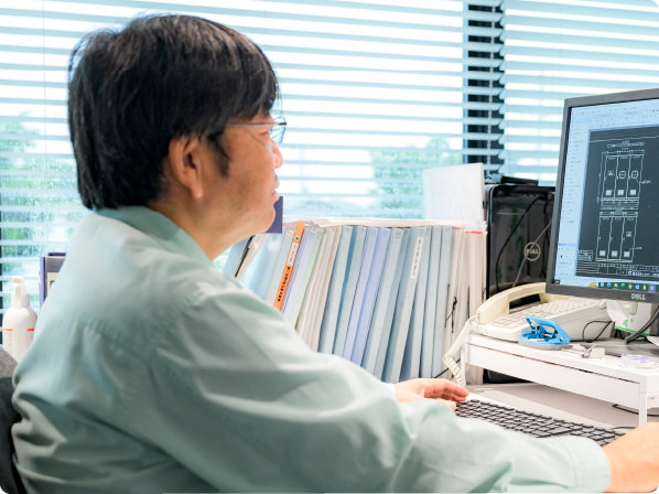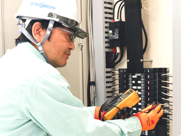 電力設備の点検。一見、人目に付かない地味に思える仕事ですが、私たちが担っているのは、工場やオフィスの心臓部です。経済活動の根幹を支えていることに誇りを持って仕事に向き合っています。