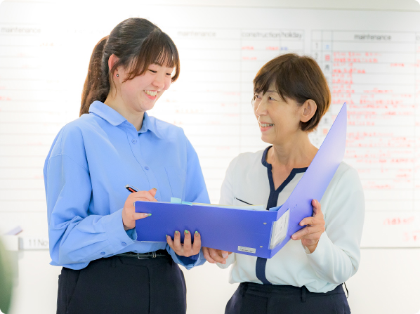点検後、取引先に提出することとなる報告書を整理・データ化することから始まり、見積書・請求書の作成、電話・来客の応対など、営業やエンジニアの業務を後方からしっかり支える重要な業務を担います。