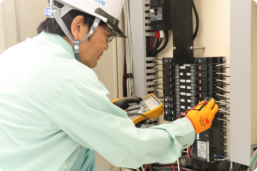 変電設備の点検は私たちにとっては日常業務ですが、取引先企業の、施設管理に携わる担当者にとっては年に1回の極めて重要な業務。その重要性を常に意識し、初心を忘れずに業務に向き合うことをモットーとしています。